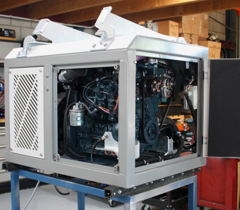 A 3-hengeres Kubota 1703BG motor hosszú élettartamra és kiváló üzemanyag-hatékonyságra lett tervezve. A fejlett vízhűtéses rendszer optimális teljesítményt biztosít extrém körülmények között is, garantálva a genset hatékony és halk működését.